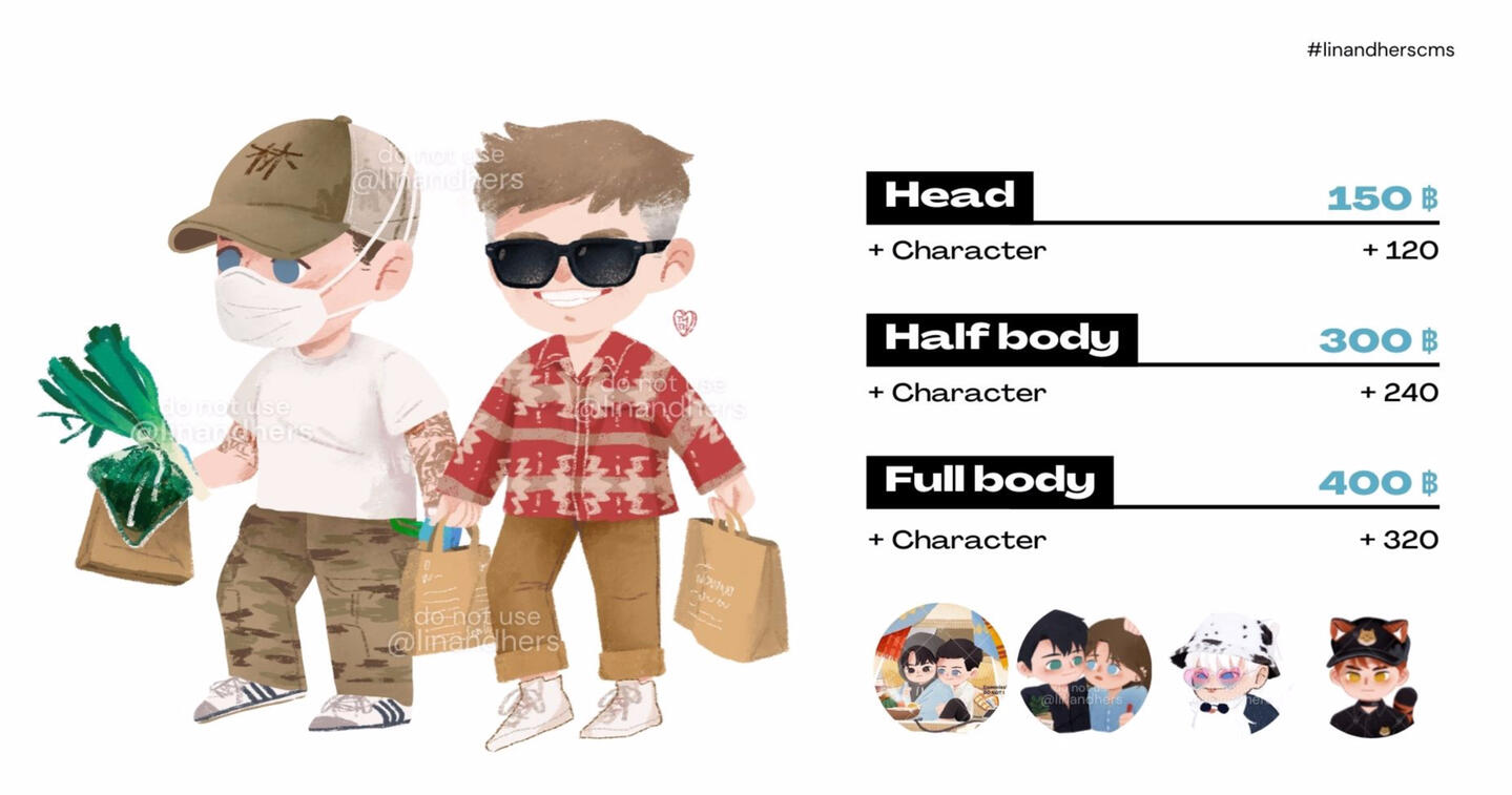 ติดต่อผู้วาดได้ทาง DM (twitter: @linandhers) เพื่อสอบถามหรือตีราคาก่อนได้