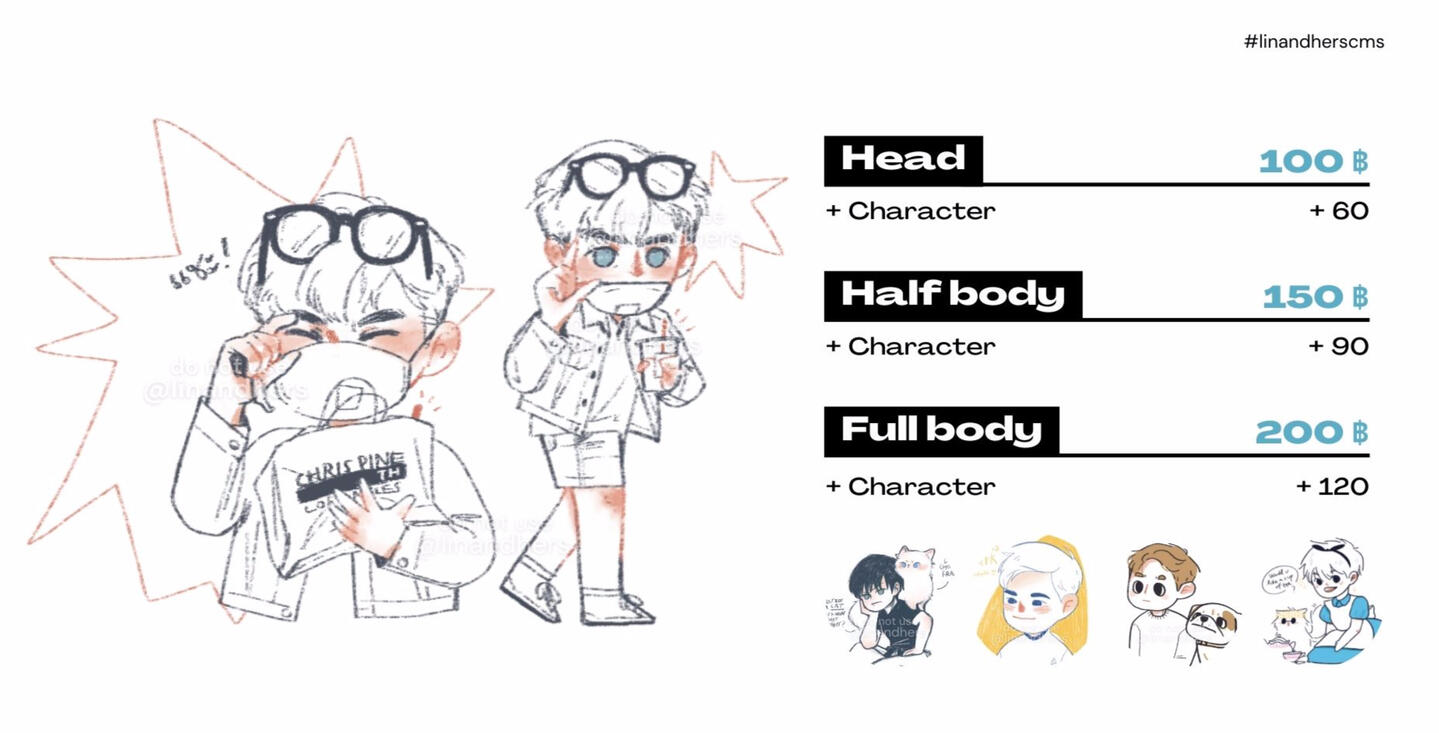 ติดต่อผู้วาดได้ทาง DM (twitter: @linandhers) เพื่อสอบถามหรือตีราคาก่อนได้